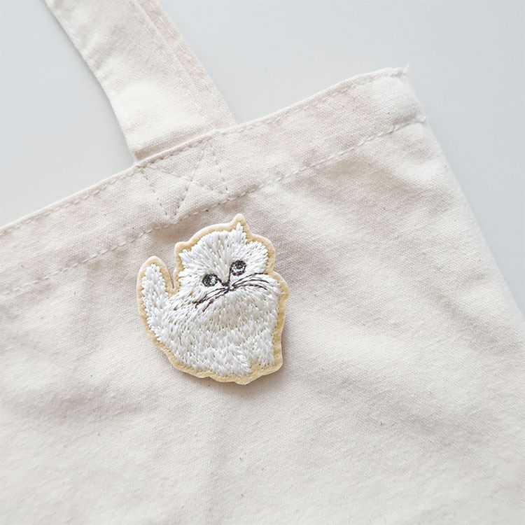 ノスタルジックなネコモチーフの刺繍ブローチ