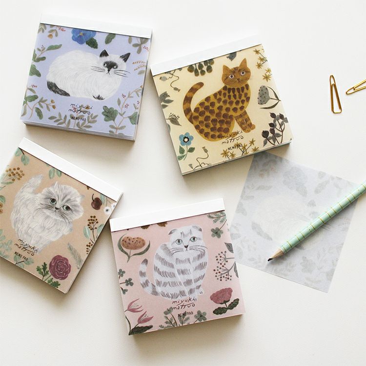 ノスタルジックなネコが描かれたメモパッド