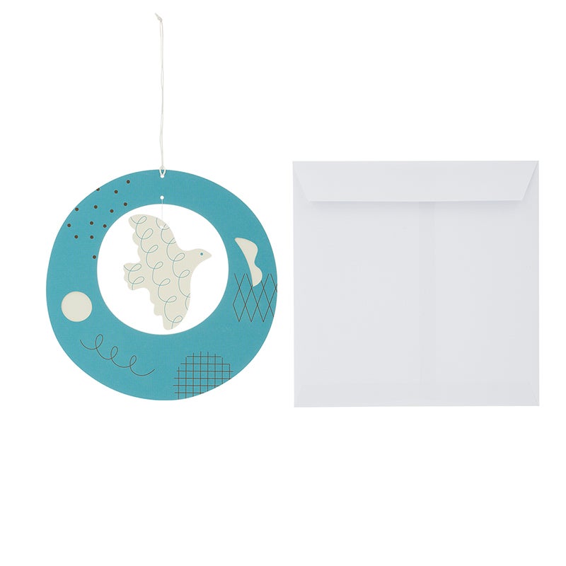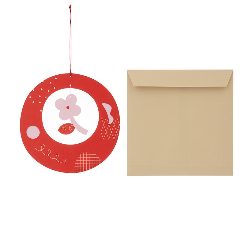 カード1枚、封筒1枚のセット。天井や壁に吊るして飾り、インテリアとしてもお楽しみいただけます。カードの中面にメッセージを書くことができます。同シリーズは、他に、フレークシール、キーホルダー、マウスパッド、モビールカードもあります。お好みの絵柄で組み合わせたギフトもおすすめです。