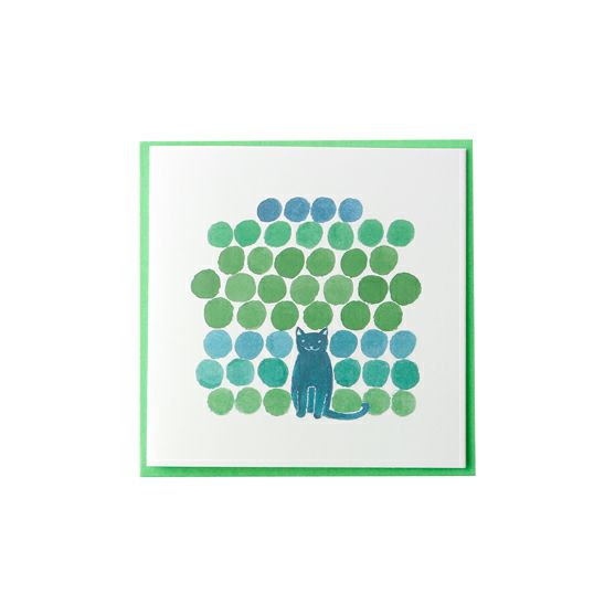 カードは、柔らかな手触りのマット紙を使用。ナチュラルで落ち着いた白の色合いが、作品とよく調和します。封筒は、柄に合わせて異なる色を選びました。プレゼントに添えるメッセージカードとしてはもちろん、フレームに入れてインテリアとして飾るのもおすすめです。