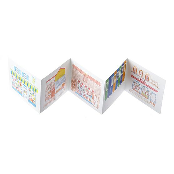 そのままでも、切り離しても使える蛇腹折りで街並みを表現したkiassoのポストカード