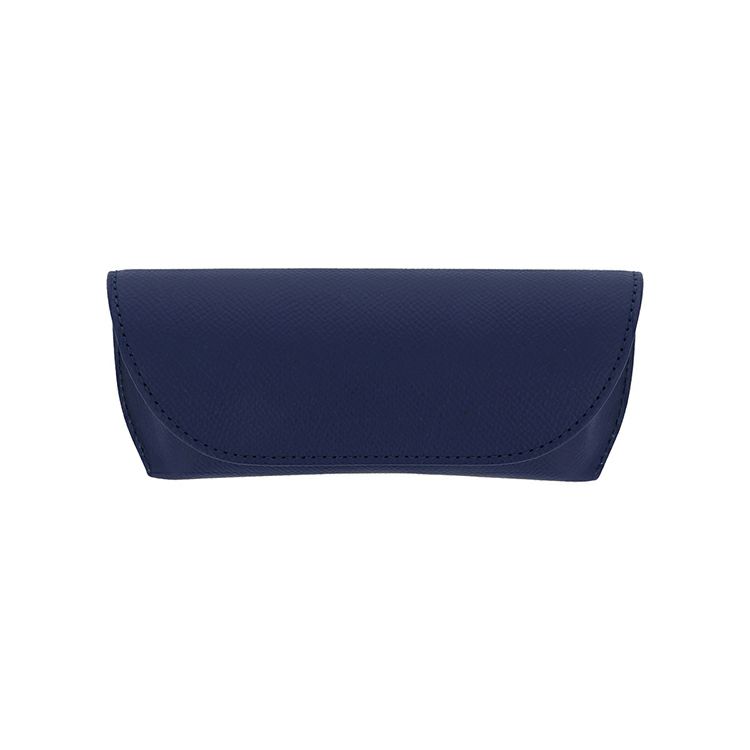 カラーは、夕焼けから夜の海をイメージしたディープシー、トワイライト、グリッターの全3色。ディープシーの内生地のカラーはダークブラウン、トワイライトはグレー、グリッターはネイビーをセレクトし、内生地に異なる色を合わせたバイカラーに仕上げました。メガネの形に沿う、曲面を使った立体的な作り。ホックを開いた内側には、ケース本体と同じ革を使用したノーズパッドホルダーが付いています。パッドに合わせてある程度変形するため、しっかりとメガネが固定され、中で動くのを防いでくれます。上質な国産カウレザーは、しっかりとしたハリがあるのが特長。傷にも強く、使い込むほど型押しされた斑がなめらかな風合いになります。発色の良い色合いと、型押しレザーの表情が上品な印象のアイテムです。