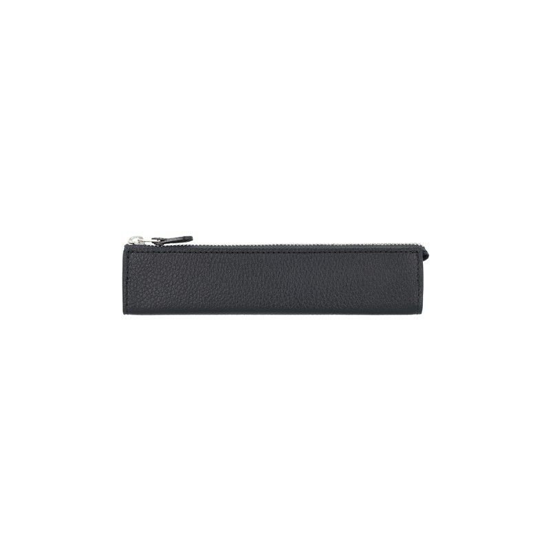 カラーは、2025年春の新色として登場した、ダークブルー、ブラウン、ブラックの全3色。重厚感のあるカラーリングに仕上げました。開け口は広く、マチは安定感のある三角形のフォルム。飽きのこないシンプルなデザインです。出し入れがスムーズで、ペンのみで6~7本程度、ペン3~4本であれば、消しゴムと定規も収納できます。やわらかく手になじみやすい革質と、大きめのシボ模様が上質な印象です。
