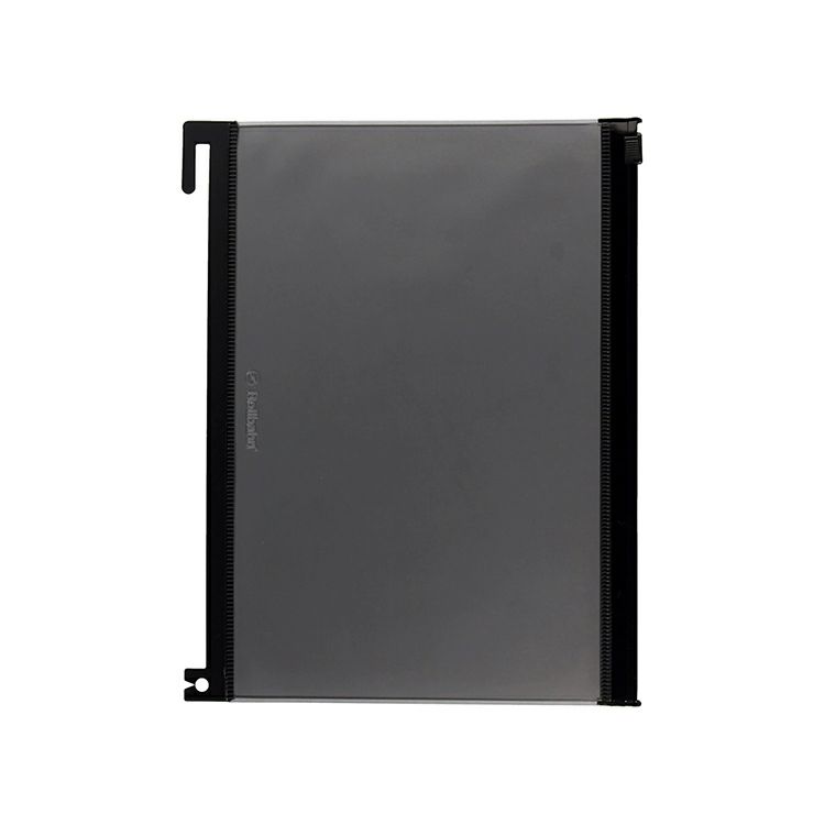 しっかり密閉できるスライダー式で、中身が落ちる心配はありません。巻末のクリアポケットと比べると、収納スペースの幅が約1cmほど小さくなります。リングに上部の爪を引っ掛け、下部の穴をリングにセットして固定します。簡単に着脱できるので、セットするページ位置は自由に変更可能。冊子を閉じた状態だとページの右端からスライダーの開閉部分が見えるので、ブックマークのように使うこともできます。A5サイズのほか、M、Lもあります。