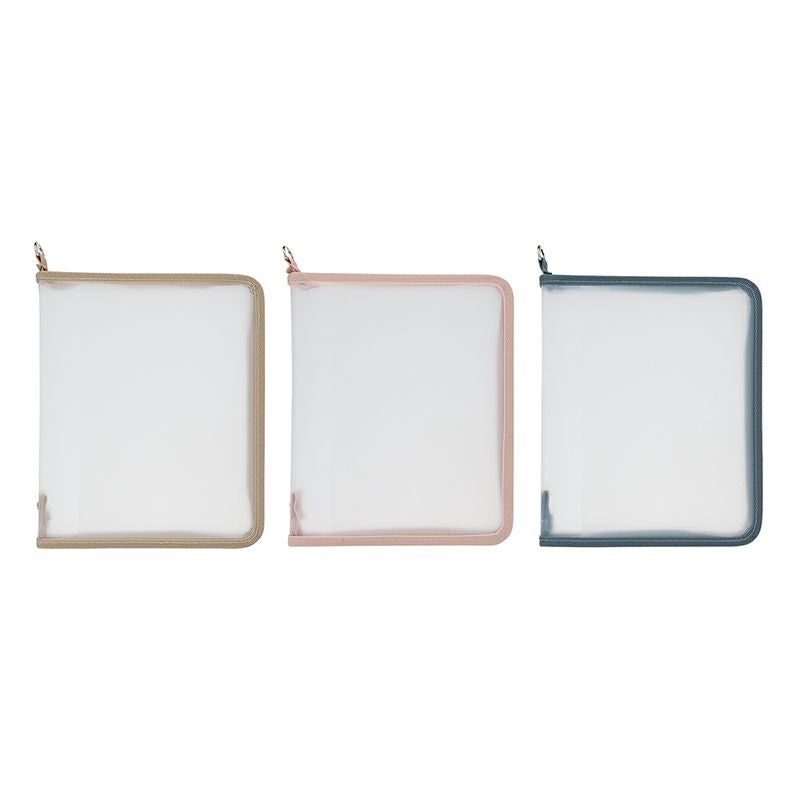 【ラウンドファスナー式】透け感のあるクリア素材のロルバーン ポケット付メモ専用ケース(A5サイズ)