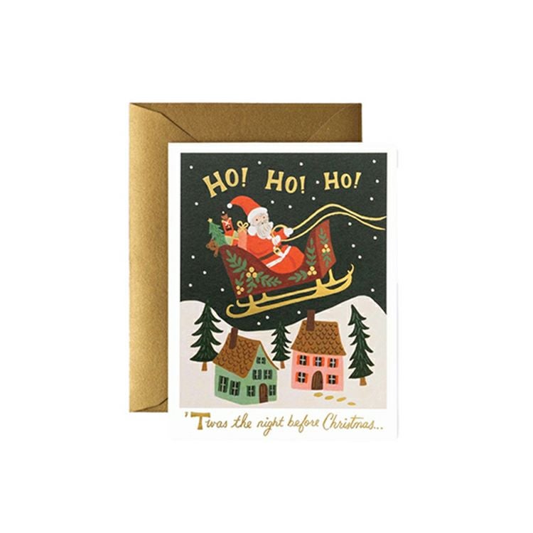 プレゼントを運ぶサンタが描かれたクリスマスカード