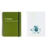 セット内容は、定番人気「ロルバーン」のB6に近しいLサイズのロルバーン ポケット付メモL、自分の好きなことやものを推し色でまとめて表現したフェイブ ロルバーン ポケット付メモL用 プロテクターの2点を組み合わせました。ロルバーン ポケット付メモLは、「シンプルで飽きのこないデザイン」と「使いやすさ」が一体となった、デルフォニックスの定番ノート。立ち姿勢でも書きやすい厚手の表紙。インクがにじみにくく裏移りしにくい5mm方眼の上質紙です。全ページミシン目付きのため、相手にメモを渡すときにもスマート。巻末にはクリアポケットも付いています。 フェイブ ロルバーン ポケット付メモL用 プロテクターは、自分の好きなことやものをカラーごとに表現した「フェイブ」シリーズのロルバーン専用プロテクター。色ごとにテーマを設け、それぞれの配色に合わせたモチーフを線画で描きました。デルフォニックスの定番、Lサイズのロルバーン ポケット付メモ、ロルバーンダイアリーのリングに取り付けができます。表紙の耐久性を高めてくれるアイテムです。さりげなく好きな色を取り入れたい方、お手持ちのロルバーンとの色合わせを楽しみたい方やアレンジを加えたい方におすすめ。スリット入りの取付穴を上下のリングにセットして固定します。リング部分を覆わず表紙のみに重ねるタイプのため、表紙を折り返して使用する際も邪魔になりません。