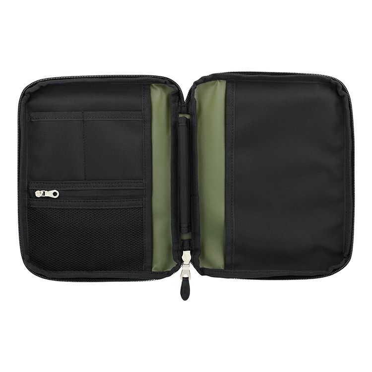 中面右側にロルバーンを差し込むスリットがあり、左側にはカードポケット、修正テープやマスキングテープなど厚みのあるアイテムも収納できるメッシュポケットを備えています。中央のペンホルダーは、太軸のペンも収納可能。お気に入りの文房具と一緒にロルバーンを持ち運びできます。直営店のDELFONICS、Smith、DELFONICS Web Shopのみでの限定販売。お気に入りのロルバーンを持ち運ぶのにおすすめのアイテムです。
