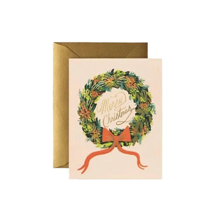 クリスマスリースが描かれたクリスマスカード