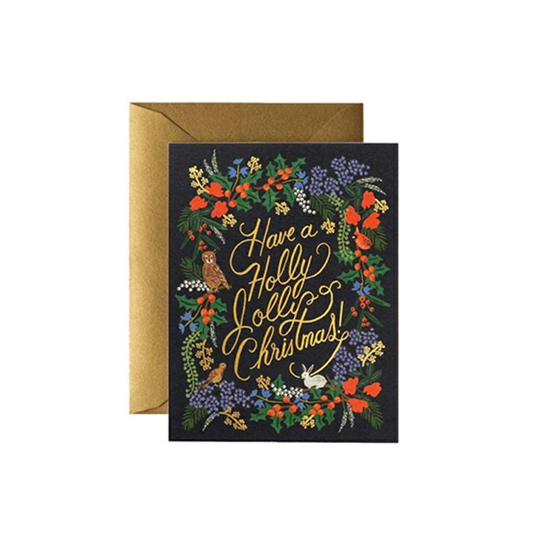 冬の草花や動物たちが描かれたクリスマスカード