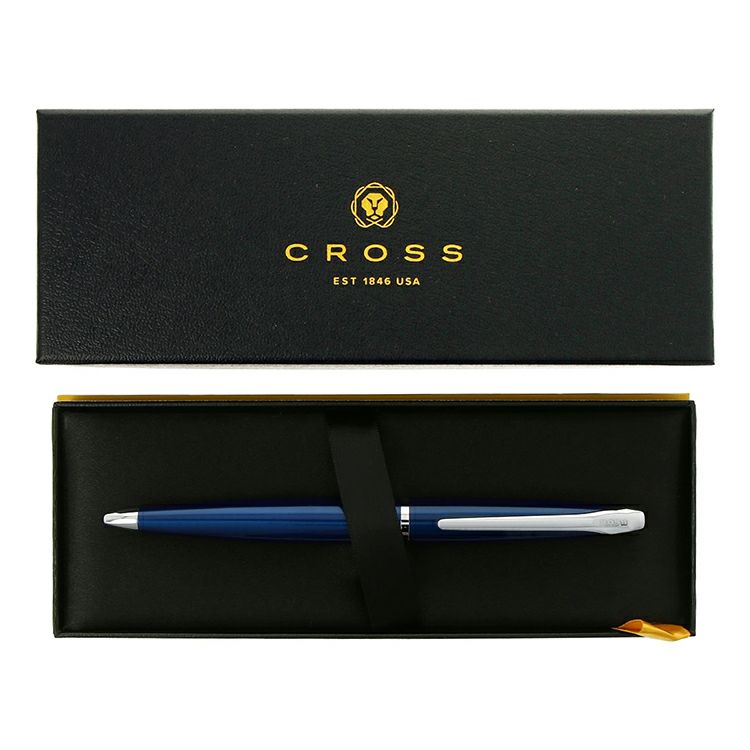軸を回して芯を繰り出す回転式で、手にフィットする形状が握りやすく書き心地も滑らか。ペン先はブラックのM(中字)です。ほかに、マットな質感で、ボディにダイヤモンド柄が施された「CROSS ATX ボールペン」もあります。専用の箱入りで、昇進や進級のお祝いギフトとしてもおすすめです。
