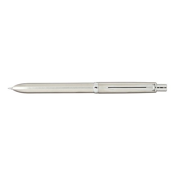 1本で、ブラック、レッドのボールペンと、シャープペンシルの3役をこなします。 ツヤのあるボディと、矢羽形のクリップの組み合わせが高級感のあるデザインになっています。