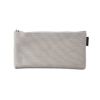 カラーは全8色。布地と同色のファスナーを選び、より一体感のある仕上がりに。ピンクのみ、アクセントとして白いファスナーを使用しています。マチの少ないフラットタイプですが、高さがあるためたっぷりと収納可能。内側にはビニール加工が施され、布素材ながら汚れがつきにくいデザインです。