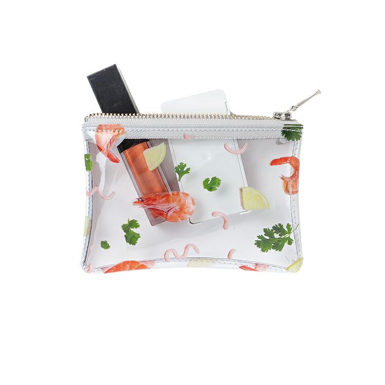 食材を並べたパターンの遊び心あふれるカラフルなポーチ(Sサイズ)