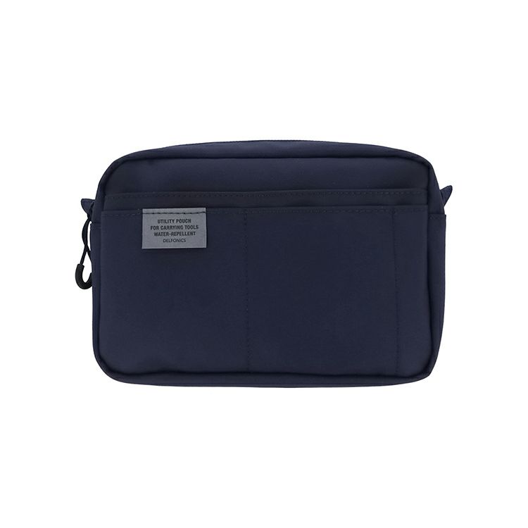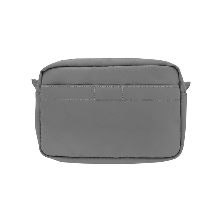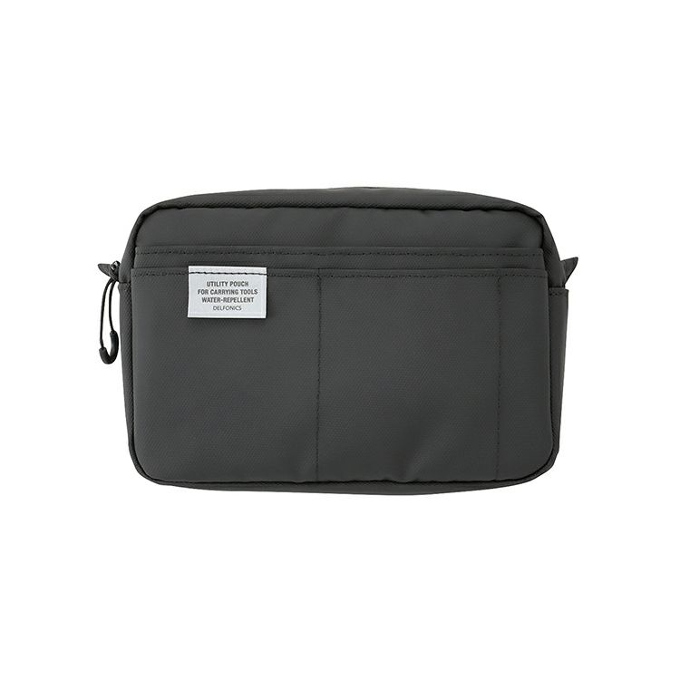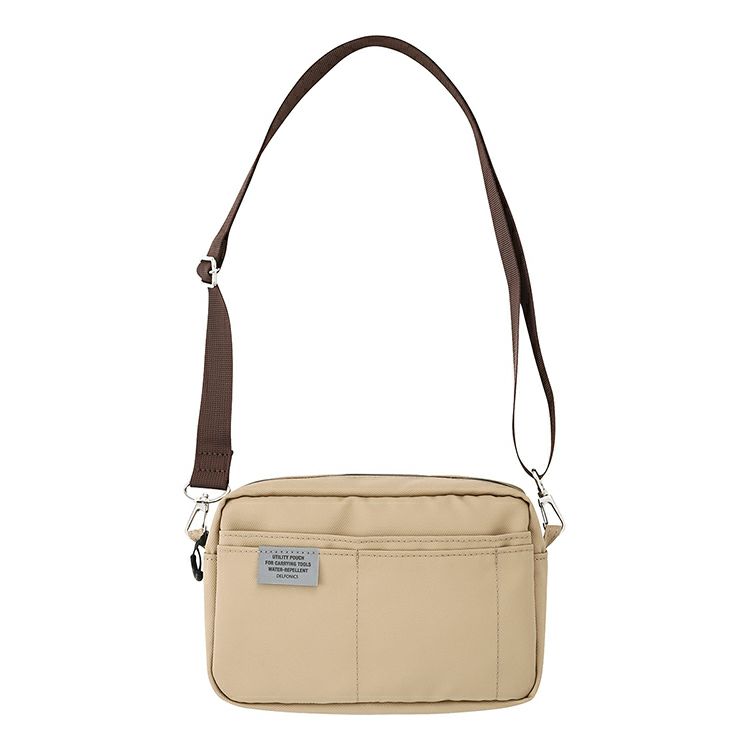 大小様々なサイズのポケットは8個で、背面にはマグネット式ポケット付き。ポケットの中身が飛び出しにくいだけでなく、取り出しやすい仕様になっています。前面と内側には仕切り付きポケットもあり、スマートフォン、ノート、筆記具など身の回りの小物を機能的にまとめて収納できます。別売りのストラップを付けると、コンパクトなサコッシュとしても使用可能。ストラップは、デザインの相性が良い「インナーキャリング ショルダーストラップ コード」と組み合わせて使うのがおすすめです。このほかに、一回り大きなMサイズ、パソコンケース、スマホバッグ、マルチケースもあります。
