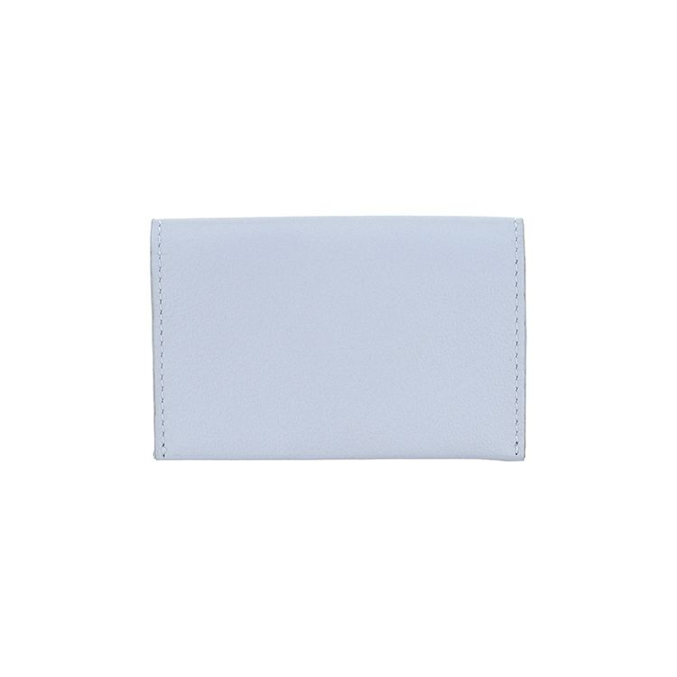 カラーは、ミュゲホワイト、アイスブルーの全2色。清楚な雰囲気のカラーリングに仕上げました。開くと二つのポケットがあり、メインポケットは、立体的な縫製で名刺が約15~20枚程度入ります。マチはありませんが、厚みが出過ぎず、ポケットに入れるには最適な厚みです。反対にある薄いポケットは、相手の名刺をしまうのに便利。開いた際にも入れた名刺が落ちにくいよう、フィット感のある仕様になっています。背面にもポケットがあり、ICカードなど普段使うものを入れられます。弾力のある柔らかな革質で、ほのかな光沢とシボの表情が上質な印象です。