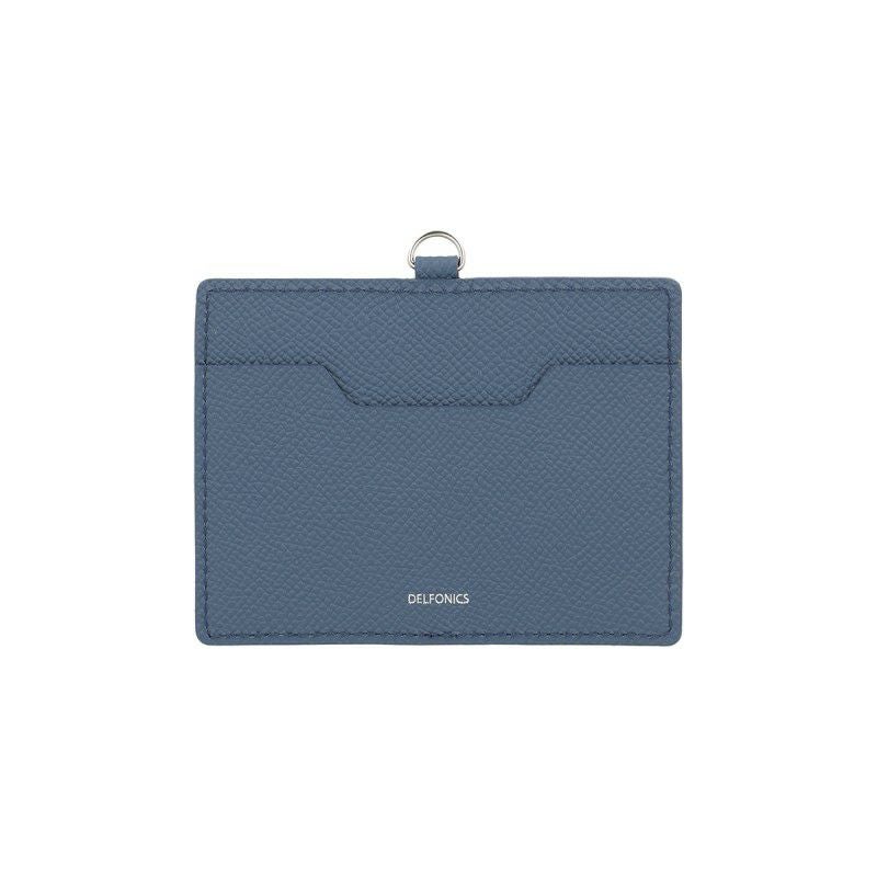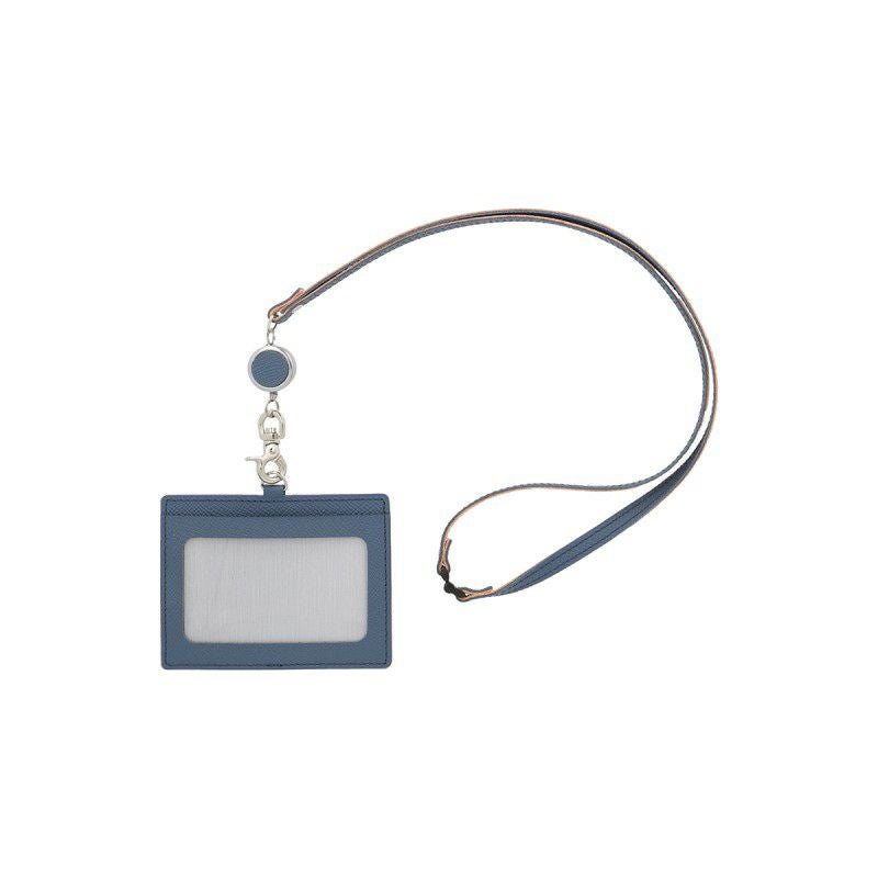 カラーは、2025年春の新色として登場した、フォグブルー。シーンを選ばずに使える、上品なニュアンスカラーに仕上げました。表の窓付きカードポケットは、ゆとりを持たせた大きめのサイズ。裏側にもポケットがあり、予備の名刺を3~4枚程度入れられます。同色のネックストラップは、最大40cmまで伸びるリール付き。首にかけたまま伸縮するため、社員証を読み取り機器にタッチしやすくなっています。一定の負荷がかかるとプラスチック部分が外れるセーフティーパーツも付いています。上質な国産カウレザーは、しっかりとしたハリがあるのが特長。傷にも強く、使い込むほど型押しされた斑がなめらかな風合いになります。発色の良い色合いと、型押しレザーの表情が上品な印象のアイテムです。