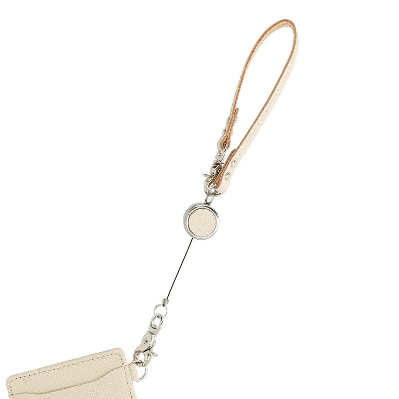 ストラップの先にあるコイン型の部分がリールで、引っ張ると40cmまで伸ばすことが可能。ストラップと同系色の革が貼られ、デザインのアクセントとなっています。別売りの「Richesse パスケース」と組み合わせれば、カバンに付けて無くさず持ち運べ、改札の通過もスムーズです。上質な国産カウレザーは、しっかりとしたハリがあるのが特長。傷にも強く、使い込むほど型押しされた斑がなめらかな風合いになります。発色の良い色合いと、型押しレザーの表情が上品な印象のアイテムです。