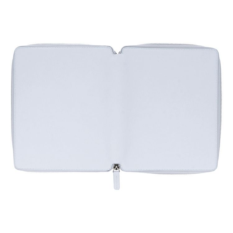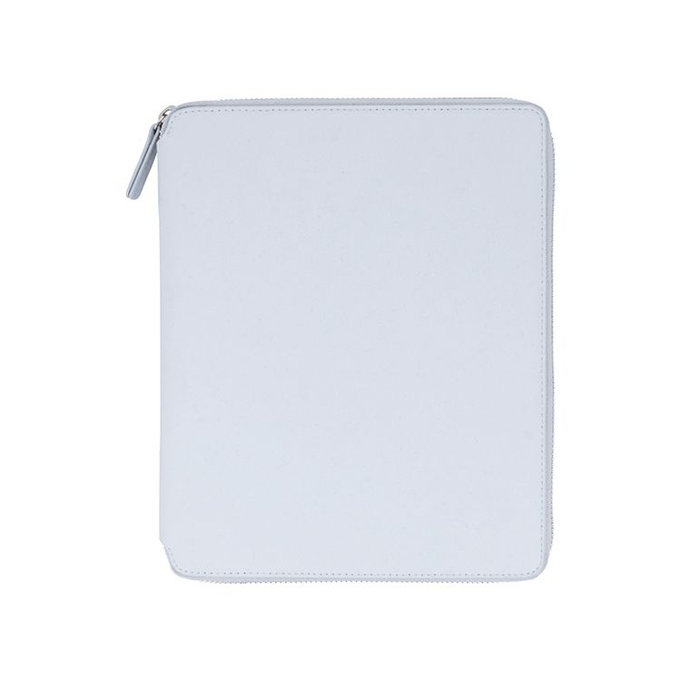 カラーは爽やかな色味のアイスブルー。アイスブルーのラウンドケースは、直営店のDELFONICS Web Shopのみで販売する限定カラーです。やわらかでふっくらとした厚みが心地よく、手に吸いつくようなマットな質感です。