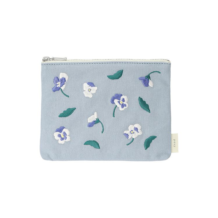 花々がふわりと舞う様子を刺繍で施した「ポジー」のポーチ(横17cm×縦13cm)