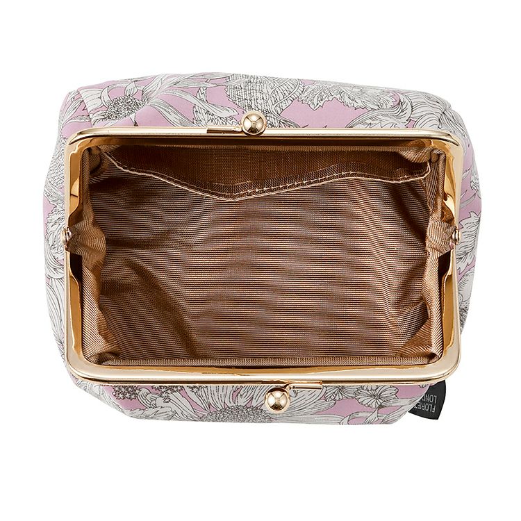 デイリーユースで活躍する、コンパクトな花柄のがま口ポーチ