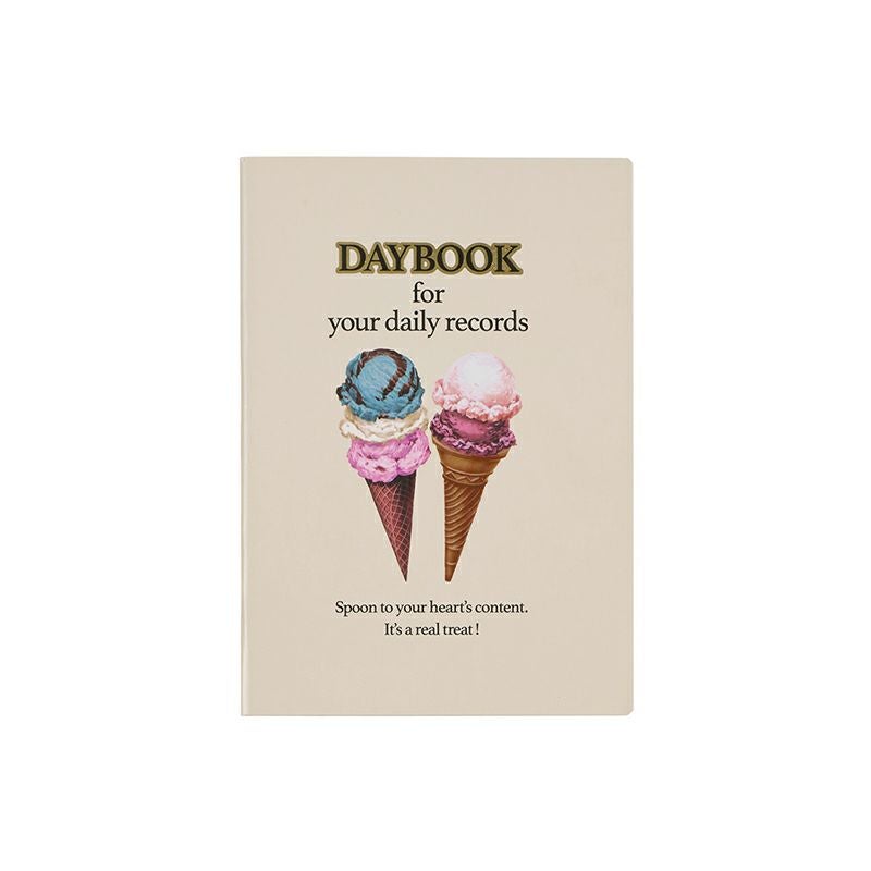 1960年代以前の雑誌広告をイメージし、デザインしたダイアリー。艶やかで甘い、アメリカで愛されているデザートを重みのあるタッチで描きました。クラシックな書体で配した「DAYBOOK」の文字や金の縁取りが世界観を演出しています。
