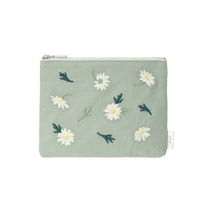 花々がふわりと舞う様子を刺繍で施した「ポジー」のポーチ(横17cm×縦13cm)