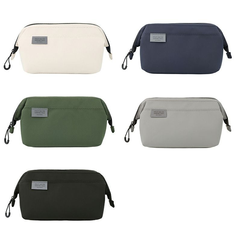 ファスナー部分にワイヤーが入っているため、開いたときに口が大きく広がり、中の物を出し入れしやすい仕様。内側にはメッシュポケットが2つあります。底に6cm程のマチがあり、スマートフォンやイヤホン、化粧品などの細かな日用品だけでなく、厚みのある充電器やデジタルカメラなどの電子機器、デジタル機器のケーブル類の収納に便利です。撥水生地を使った同シリーズは、一回り大きなMサイズ、取り外し可能なペンホルダー付きのボックス型ペンケース、口が大きく開くワイヤーペンケース、パソコンケース、サコッシュ、スマホバッグ、3サイズのポーチなどもあります。