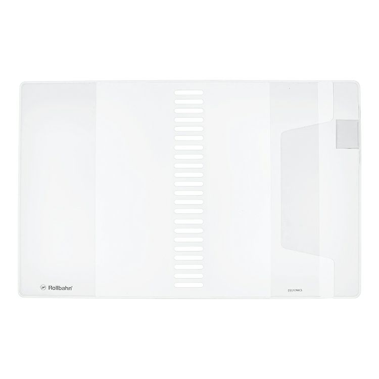 菌の増殖を抑制する抗菌素材を使用。除菌スプレーなどを使ったこまめな手入れにより、抗菌効果が持続します。すりガラスのようなスモークがかったクリアタイプですが、ほどよい透け感があるため、お気に入りの表紙を隠さずに楽しめます。さらりとしたマットな手触りで、カバーにセットした表紙がカバーに張り付くことがありません。カバー内側にはシルバーの箔押しでロゴをあしらい、清潔感のあるクリーンな印象に仕上げました。セットする際は、ロルバーン本体を広げた状態で、ゴムバンドを裏表紙の内側にかけて右袖に差し込み、スリットからゴムバンドを出します。その次に左袖に表紙を差し込み、クリアカバーにセット。リングに沿ってスリットがあるため、もたつくことなくスムーズに開閉できます。ロルバーン本体のゴムバンドを使用して留めるユニークな仕様。リングタイプ、A5サイズの「ロルバーンダイアリー」にも使えます。