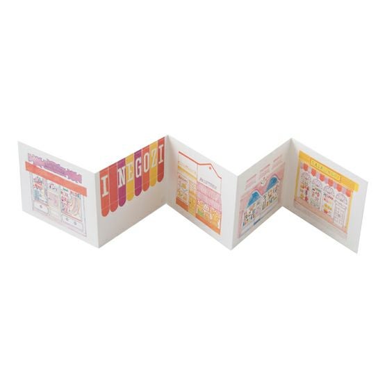 そのままでも、切り離しても使える蛇腹折りで街並みを表現したkiassoのポストカード