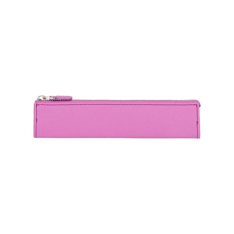 開け口は広く、マチは安定感のある三角形のフォルム。飽きのこないシンプルなデザインです。出し入れがスムーズで、ペンのみで6~7本程度、ペン3~4本であれば、消しゴムと定規も収納できます。上質な国産カウレザーは、しっかりとしたハリがあるのが特長。傷にも強く、使い込むほど型押しされた斑がなめらかな風合いになります。発色の良い色合いと、型押しレザーの表情が上品な印象のアイテムです。デルフォニックスが別注した「リュセス」シリーズは、直営店のDELFONICS、Smith、DELFONICS Web Shopのみでの限定販売です。「リュセス」シリーズは、ほかにネームカードケース、ジップカードケース、CPウォレット、IDストラップがあります。コーディネートを彩る、差し色のアイテムとしておすすめです。
