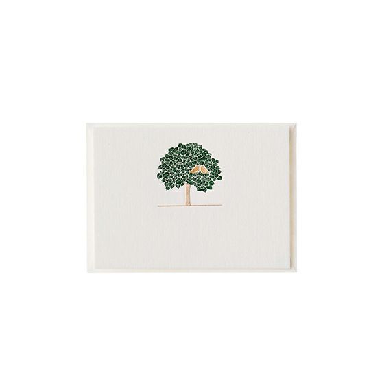 カードと封筒の素材は上質なコットンペーパー。白地にワンポイントで、精巧な銅版印刷が施されています。凹凸のある絵柄からは、大量印刷では得られない温もりと、職人のこだわりが伝わってきます。