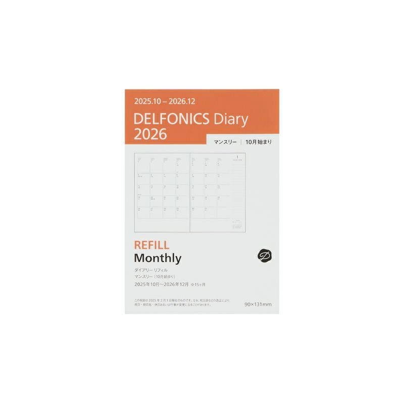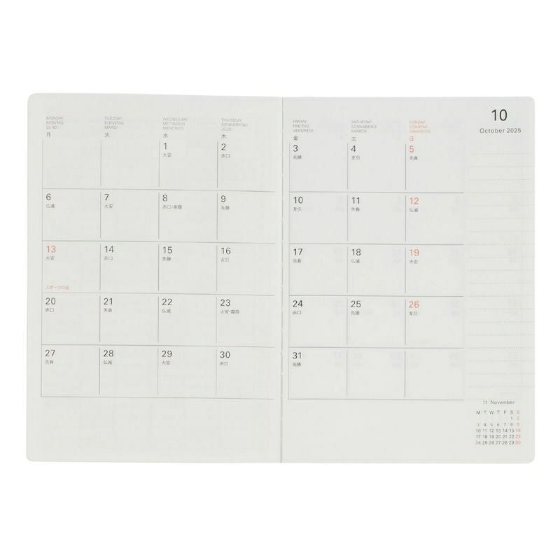 【ダイアリーリフィル】見開き1ヶ月のマンスリータイプ(マンスリー・ポケットサイズ/2025年10月始まり手帳)