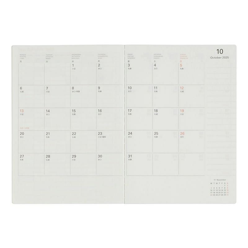 【ダイアリーリフィル】見開き1ヶ月のマンスリータイプ(マンスリー・B6サイズ/2025年10月始まり手帳)