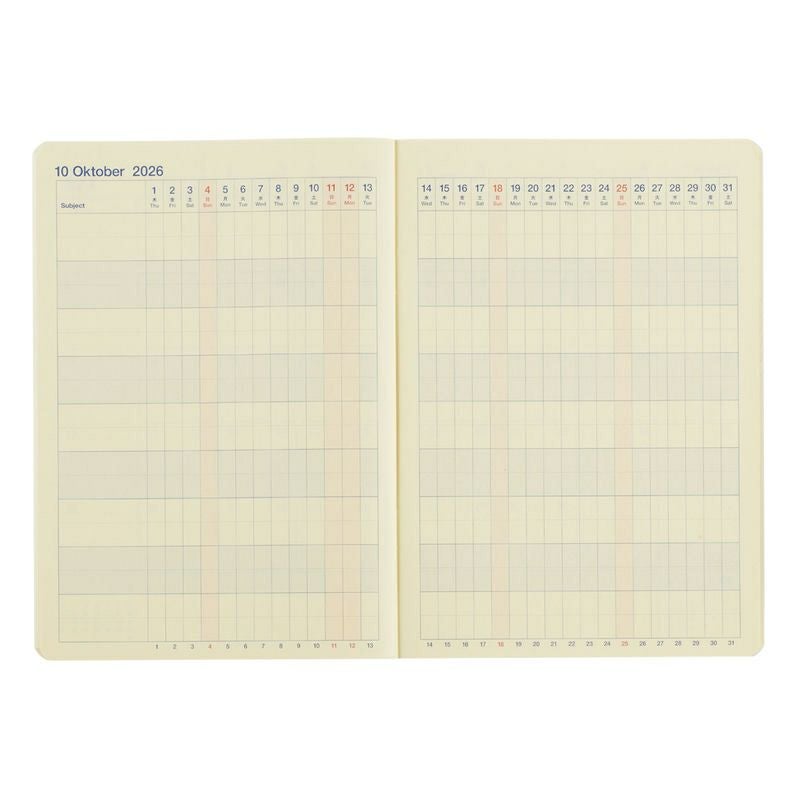 【直営店限定】複数予定を一覧できる、横軸ガントチャート付きノートタイプのロルバーンダイアリー(2026年版/2025年10月始まり手帳)