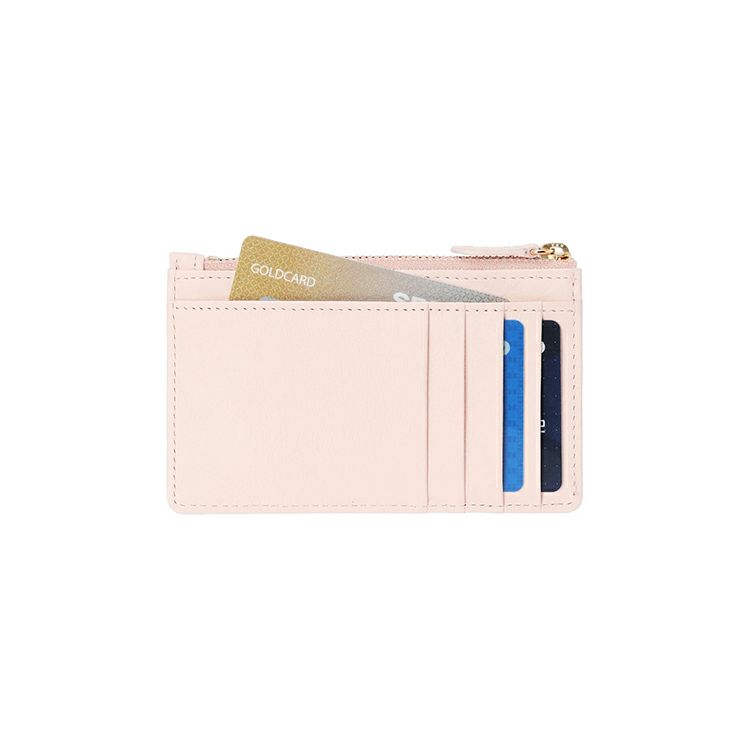 カラーは、2023年冬の新色として登場したミュゲホワイト、アイスブルーの全2色。清楚な雰囲気のカラーリングに仕上げました。キャッシュレス時代に合わせ、機能的かつミニマルな仕様にこだわりました。ジップカードケースは、外側にカードポケットが4つと大きなポケットが1つ、ファスナーの内側にもポケットが1つ付いています。片側にマチをつくり、コインや鍵なども収納でき、中身を見やすく取り出しやすいデザイン。スリムな横長で、スマートフォンと同等のサイズです。カードケースや2つ目の財布としてなど、用途に合わせて幅広く使えます。弾力のある柔らかな革質で、ほのかな光沢とシボの表情が上質な印象です。