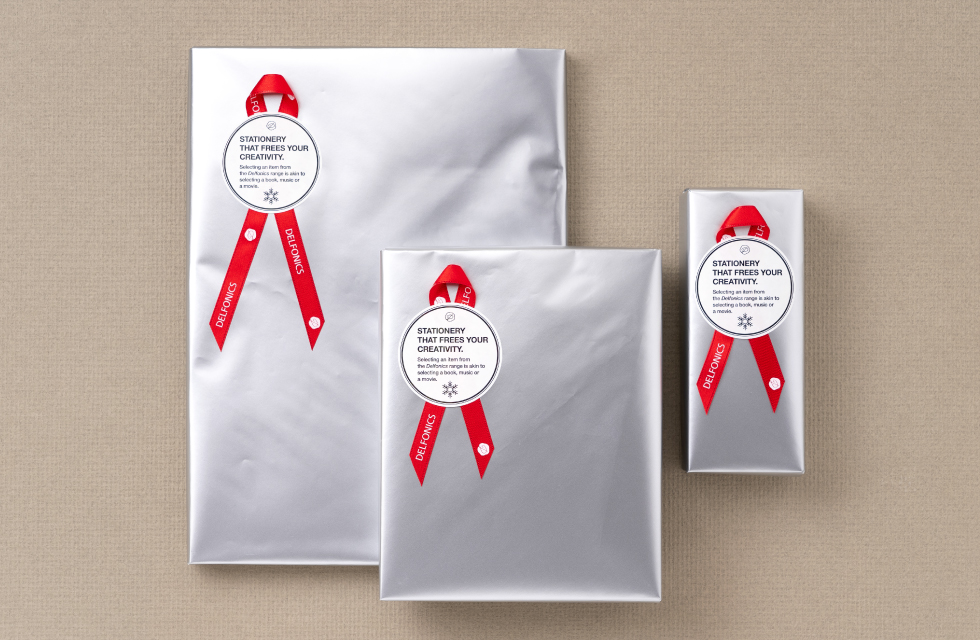 DELFONICS Web Shopでは、無料のギフトラッピングサービスが利用可能。ご注文の際、支払い方法選択画面にて、ギフトラッピングをお選びください。ご注文商品を1つずつラッピングしてお届けする「個別ラッピング」、ご注文商品をすべてまとめてラッピングする「まとめてラッピング」のどちらかを選択できます。キャンペーン期間中、限定デザインのシールをワンポイントにした特別仕様です。