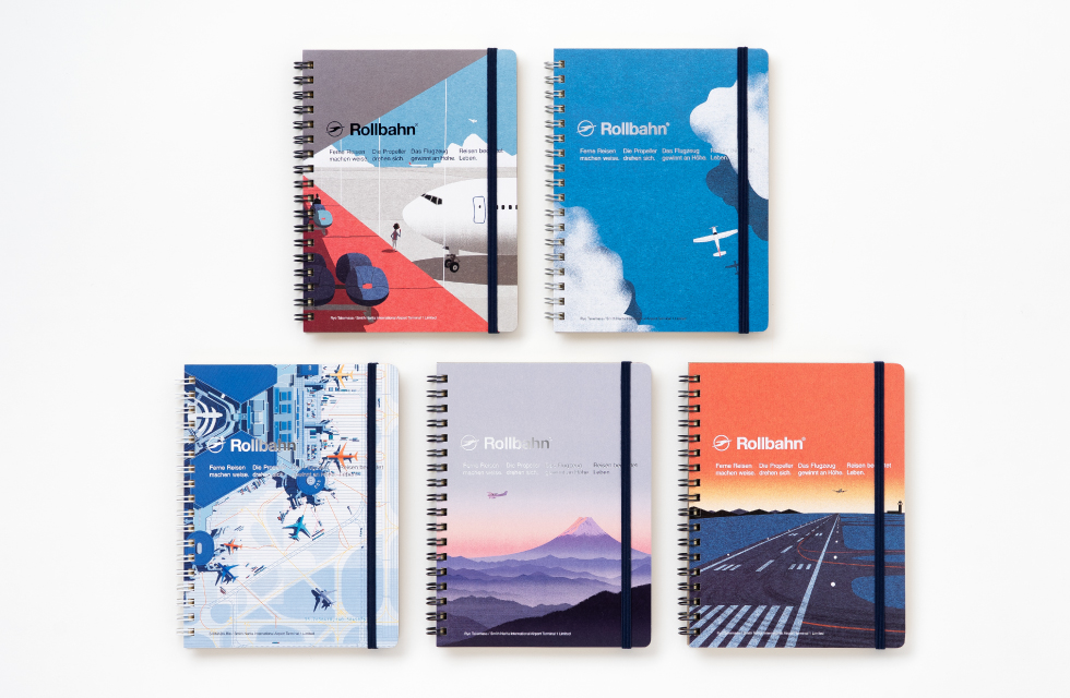 直営店舗のスミス 成田国際空港 第1ターミナルで販売している限定デザインをピックアップ。イラストレーター、武政諒さんとコラボレーションした、ノスタルジックで温かみのある4柄に加え、嶋田里英さんの書き下ろしイラストの新柄が仲間入り。成田空港の駐機場を上空から眺めたような視点で描いた、精密で見ごたえのあるデザイン。飛行機や滑走路のラインがポップなアクセントになり、右下には描いた場所の緯度経度も記されています。ドイツ語で“滑走路”を意味する「ロルバーン」にぴったりのデザインです。